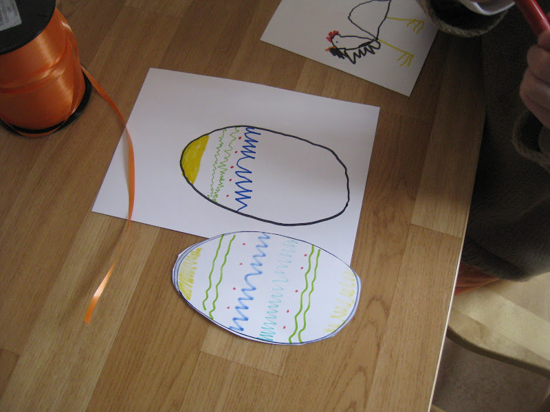 Barnen på Pandan gjorde påskpynt i måndags. Det blev fina vykort och fjädrar och påskägg att hänga i påskriset.